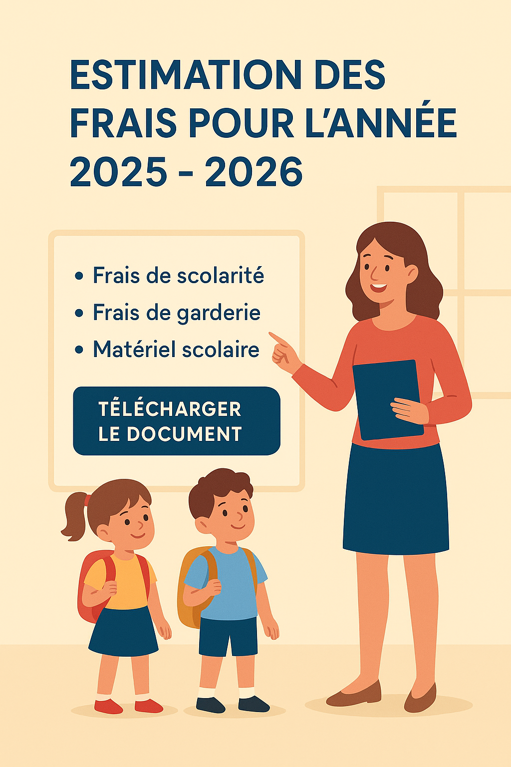 Vous trouverez ici l’estimation des frais pour l’année scolaire 2025-2026.
